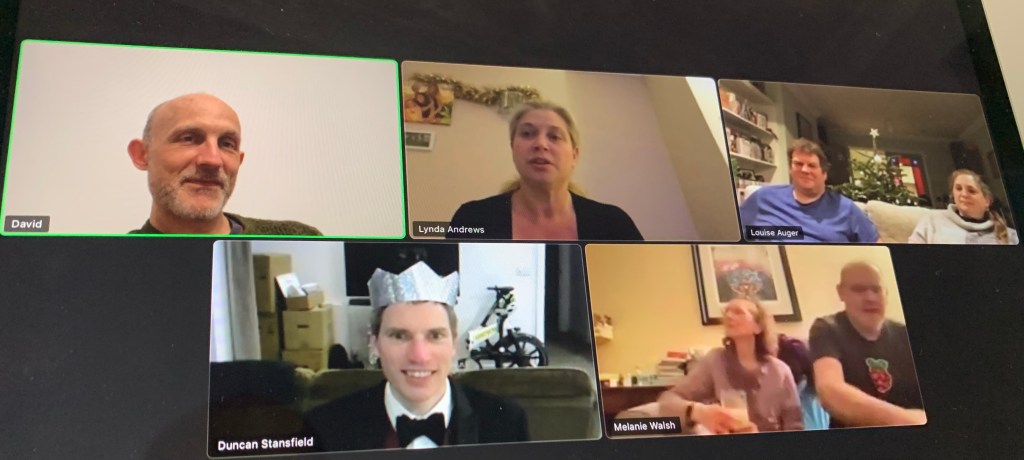For New Year’s Eve 2020 we followed the latest fashion trends and met virtually over Zoom. Our usual venue, née B Bar, lately Baroosh, and now The Town and Gown (not that one), is like most of the UK in COVID limbo. Cambridge is in tier 4, currently the most restrictive tier, officially labelled “stay at home” and more realistically known as “horse significantly bolted”.